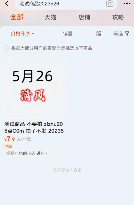自行在淘宝搜索关键词:测试商品不要拍2023526