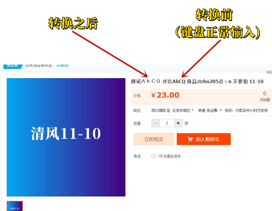 淘宝(AbCQ 对比AbCQ)特殊字母上标题技术 推荐 2023-11-10 09:43:49 13171 ¥155 分享 淘宝标题特殊字母修改 特殊字母大小写都可转换,不影响搜素权重! 对比正常键盘输入的字母 更加突出明显,更容易博眼球 以下为视频教程,请付费或开通会员后观看; 如果支付后未收到教程,可在最下方查询订单! ... 扫码免登录支付 本文章为付费文章,是否支付155元后完整阅读?如果您已购买过该文章,[登录帐号]后即可查看 支付155元 封面图