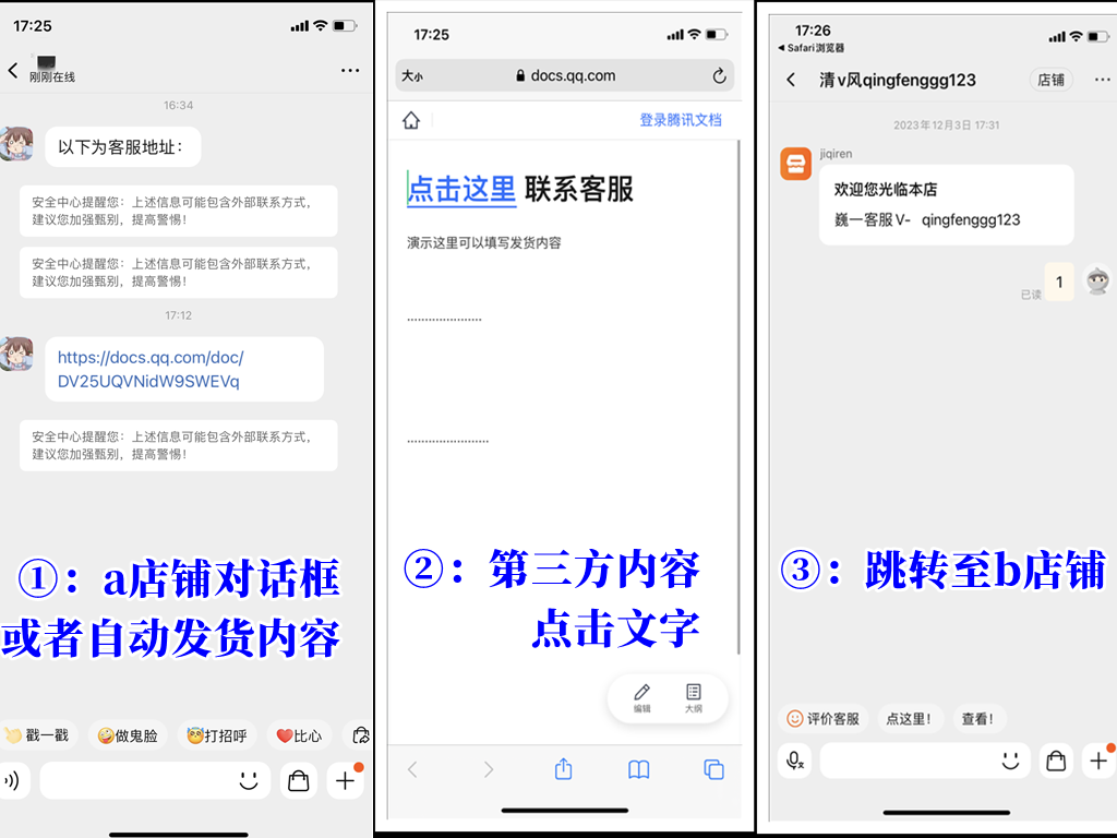 淘宝 通过第三方文档跳转旺旺客服 (适用于发货内容 或 对话) 推荐 2024-01-12 17:44:45 6526 ¥158 分享 重要提示: 具体效果看下图 适用于 卖自动发货内容的商品 或者其他虚拟商品 或者 对话界面直接点击 具体效果自行实践 无固定玩法 A店铺----第三方内容----跳转至B店铺客服 以下为视频教程,请付费或开通会员后观看; 如果支付后未收到教程,可在最下方查询订单! ... 扫码免登录支付 本文章为付费文章,是否支付158元后完整阅读?如果您已购买过该文章,[登录帐号]后即可查看 支付158元 封面图