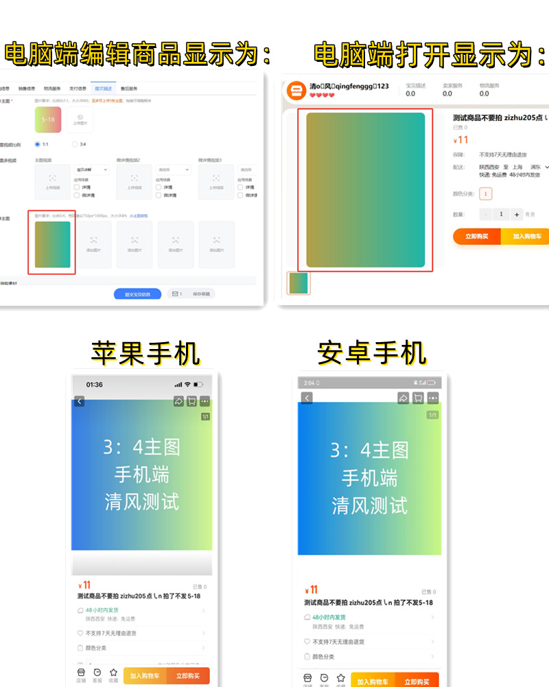 【免费】淘宝3:4图换服务器双图教程(全类目都可换) 推荐 2024-05-18 02:13:51 17860 ¥180 分享 具体效果为: 电脑端: 编辑商品图 3:4主图显示为正规图 打开也为正规图 手机端: 苹果和安卓手机显示为自定义图 不需要发布 淘分销商品 以下为视频教程,请付费或开通会员后观看; 如果支付后未收到教程,可在最下方查询订单! ... 扫码免登录支付 本文章为付费文章,是否支付180元后完整阅读?如果您已购买过该文章,[登录帐号]后即可查看 支付180元 封面图
