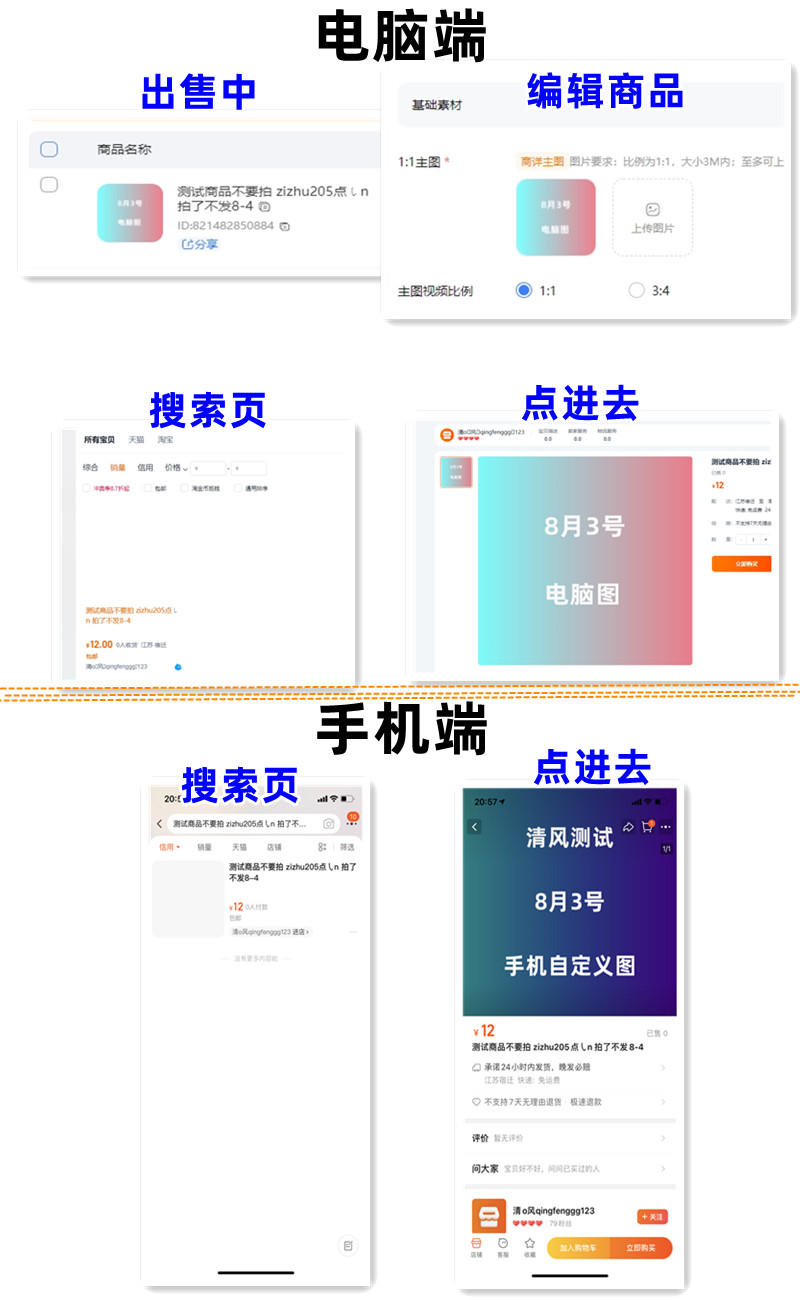 【免费】淘宝 1:1主图服务器双图 【电脑和手机只有点进去才有有图】
