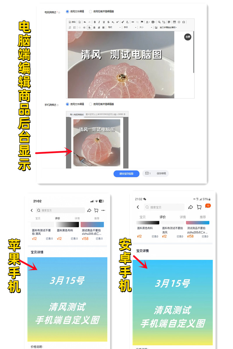 - 电脑端详情页 包括编辑商品后台都显示为正规图,